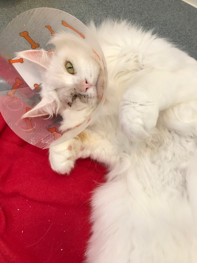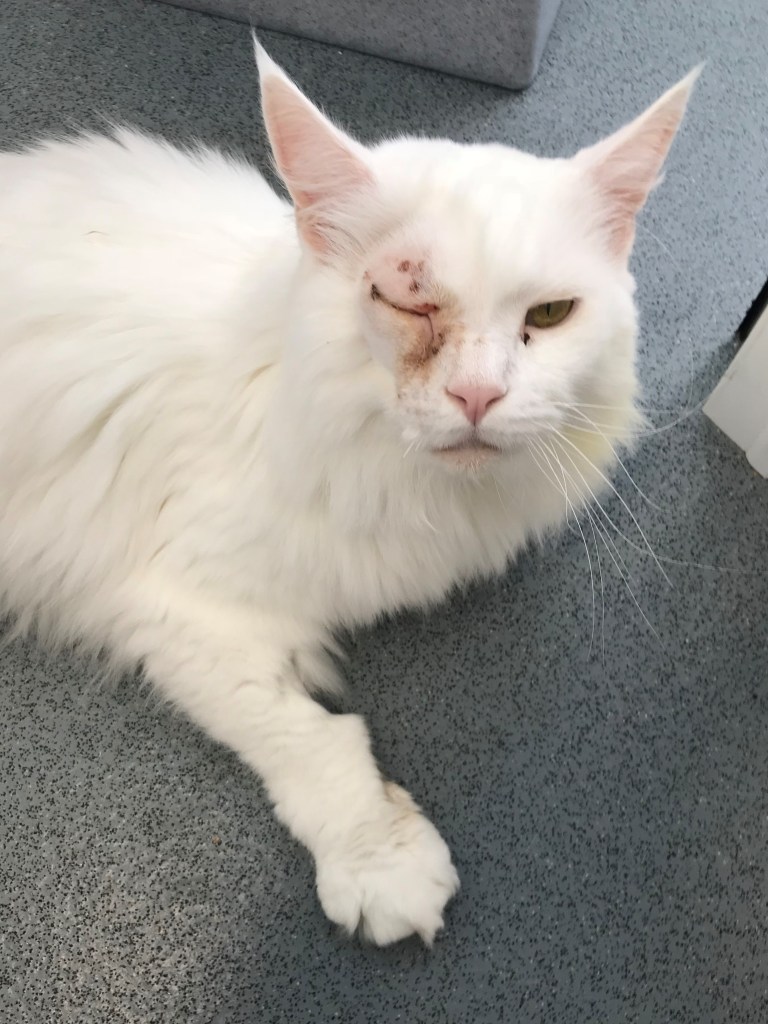 I informed Lysa the deputy manager that I would love to be able to adopt Nelson when he was fit to home. Meanwhile, our vet was hard at work treating an ongoing problem with Nelson’s right eye., which sadly wasn’t responding to treatment. It became worse with more swelling causing him so much discomfort and pain. On welfare grounds the best course of action was for Nelson to have his eye removed by the vet.